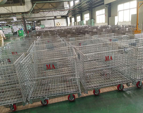 介紹:倉儲貨架配套設備,是倉儲運輸中很重要的一類物流容器,具有存放物品容量固定、堆放 整潔、存放一目了然、便於庫存清點等優點,同時也提高了倉儲空間的有效利用率。倉儲籠可 以自由折疊,不用時還可以折査存放,節省倉庫空間。