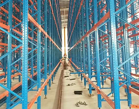 結構特點:由立柱、橫梁、支撐杆等構成,類似橫梁式貨架但更精密,穩定性強。底部加裝三向堆垛叉車行動導軌(常用不等邊角鋼),貨架高度可達10-15米,通道寬1.6-2米,僅容一台叉車,叉車沿導軌滑行作業。